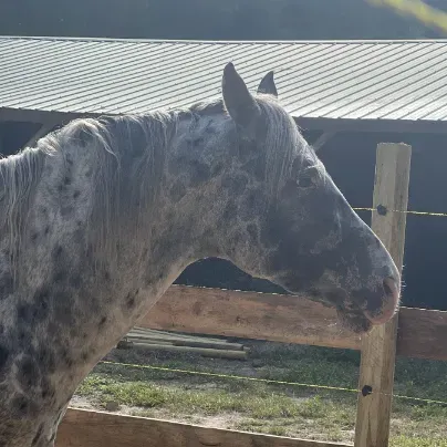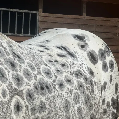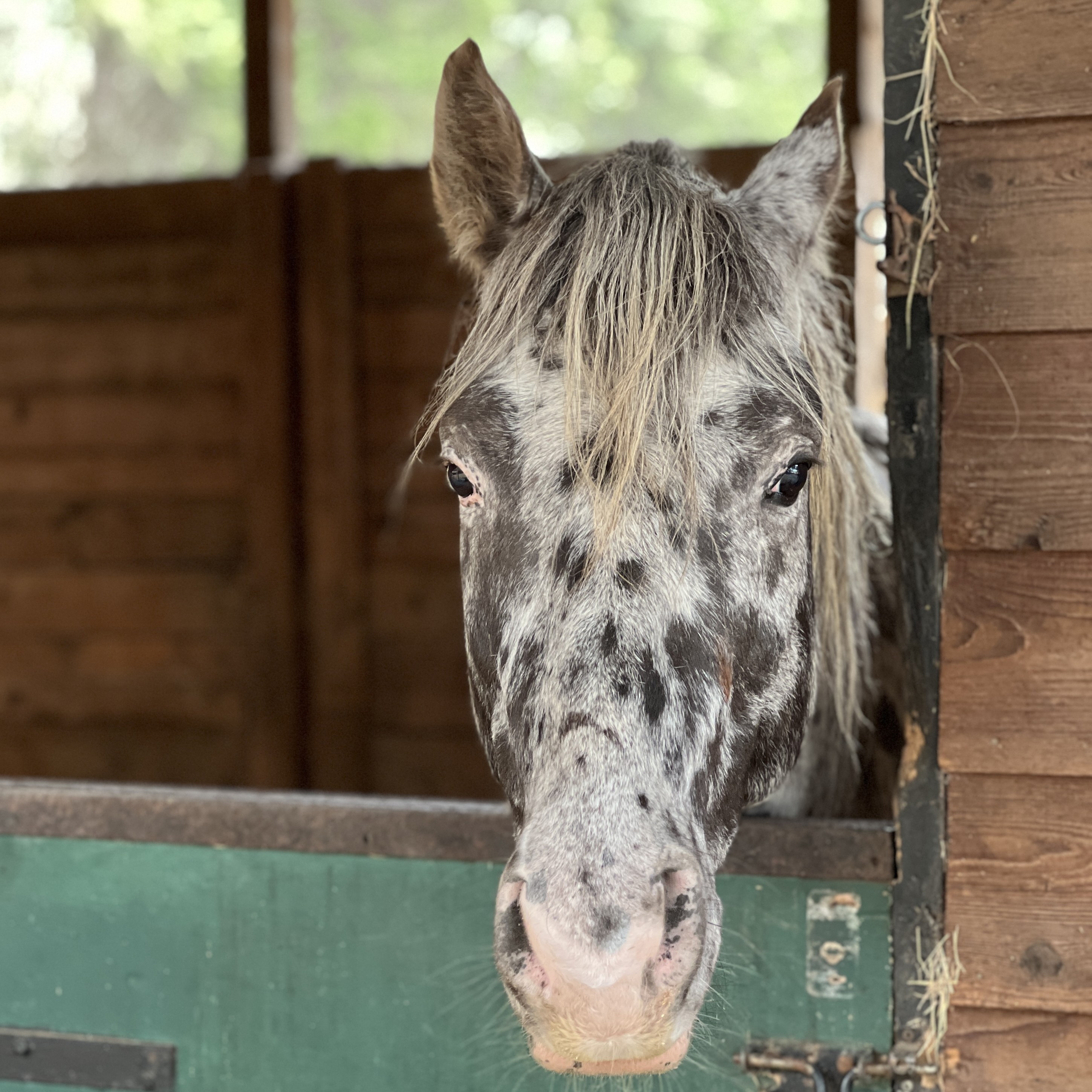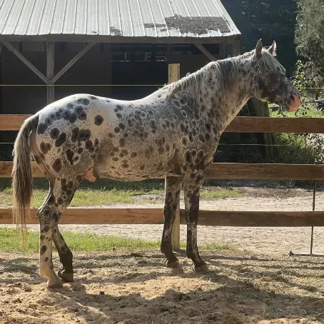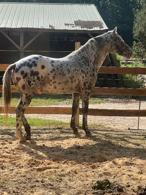 Nuksay is the cornerstone of our breeding program at Spotted Gang Appaloosas in Hopkins, South Carolina. Foaled in 2019, with striking peacock leopard pattern.