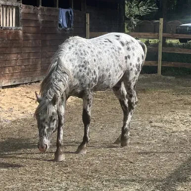 BCA Chats Nuksay a traditional stocky build, 100% Foundation Appaloosa Stallion known for his loud color, correct bones, strong body and exceptional temperament.